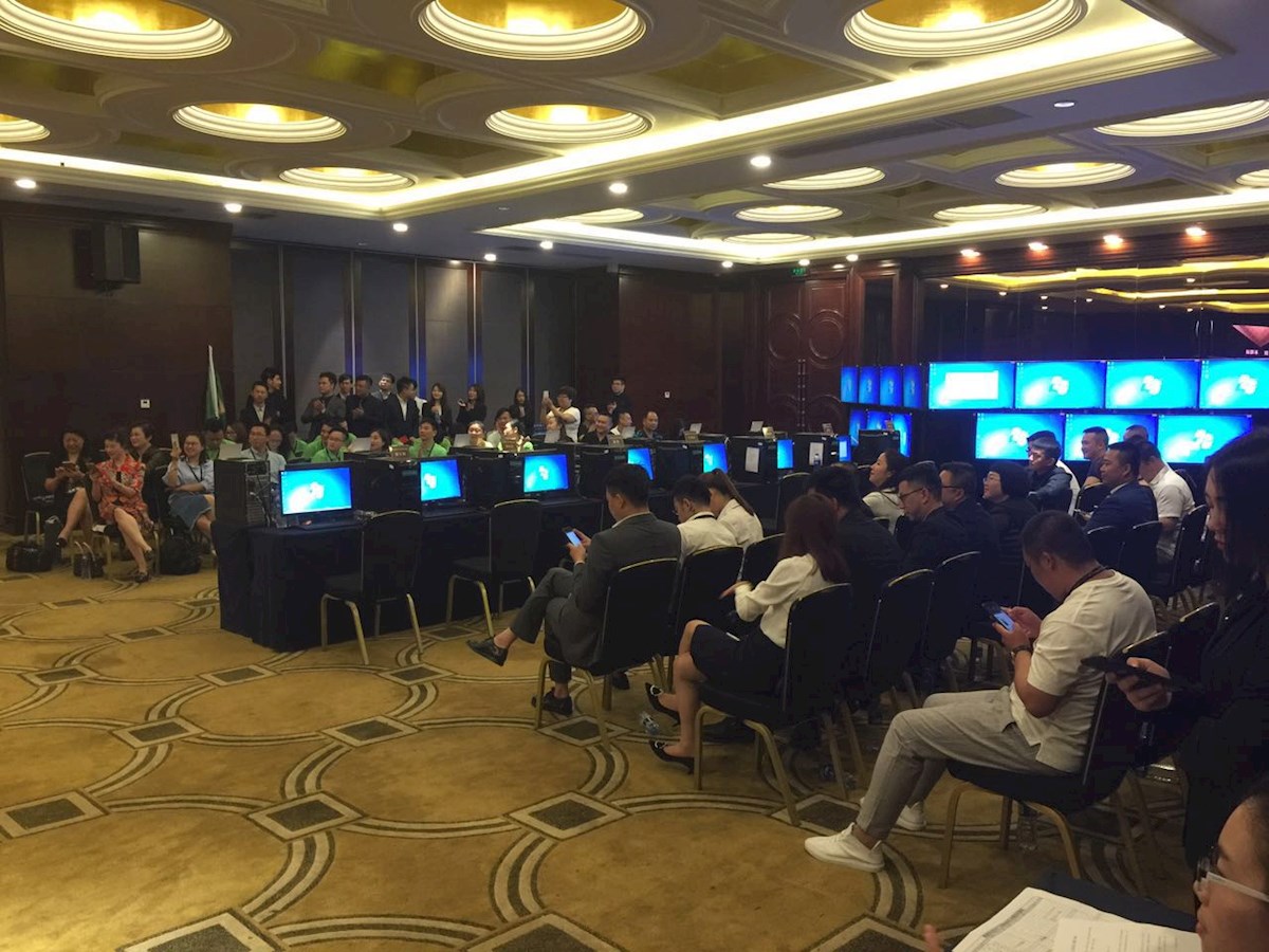 活动概述:本次活动策划、媒体邀请、金融网红邀约及网络直播执行均有星米文化公司执行,活动地点在深圳福田区大中华喜来登酒店。活动为金融比赛性质,需要电视电脑物料非常多,14台电脑、14台电视及16路信号的监控,16进16出的矩阵及相关线材等,信号分接传输非常复杂。需要实现14个选手电脑的信号到14台电视,又需要监控14个选手适时操作情况,还要遥控任意选取一名选手的信号到会场LED大屏,同时还要把这路信号网络推流直播到虎牙直播平台。本次直播为了达到比赛要求,最大特点是延迟卡顿少,现场解说声音清晰。