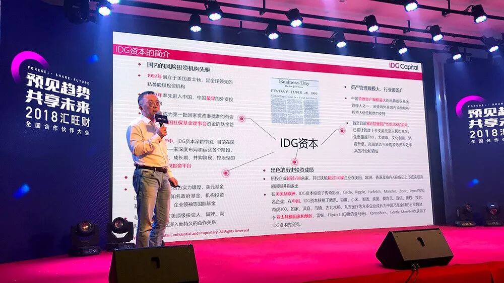 IDG资本投资合伙人朱建寰先生表示非常看好投资的汇商通盈及其管理团队,以及产品汇旺财,并预祝成为一个拥有亿万级市场的公司。