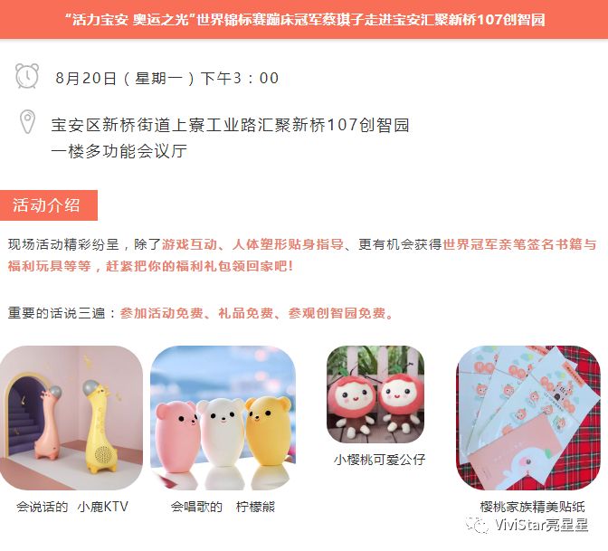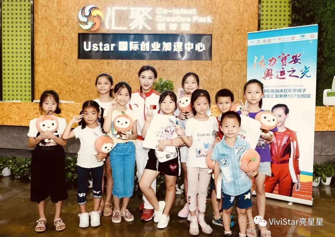 “活力宝安,奥运之光”宝安区青少年体育文化推广交流系列活动之8月蹦床冠军蔡琪子走进宝安汇聚新桥107创智园。