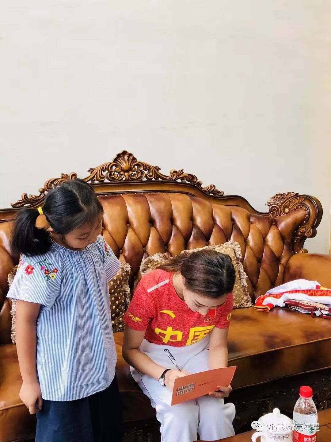 ▲奥运冠军为小朋友送上签名和寄语
