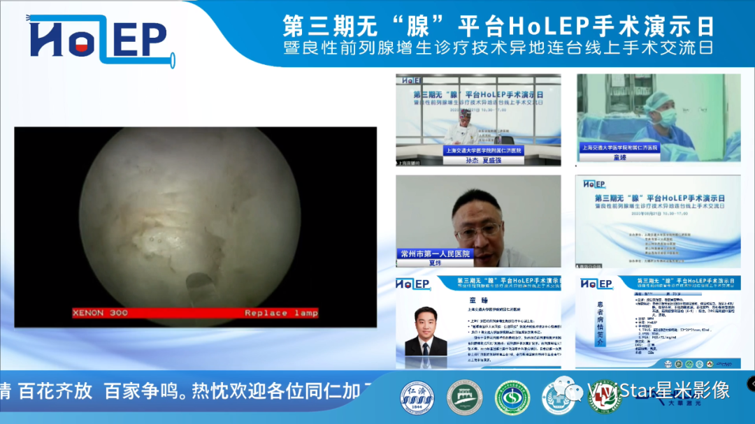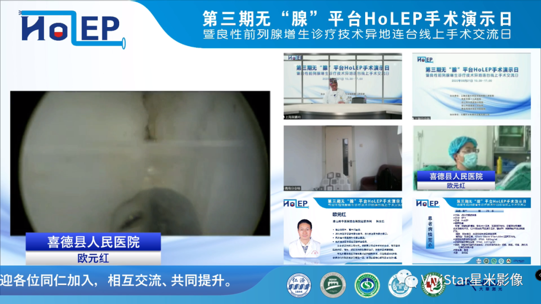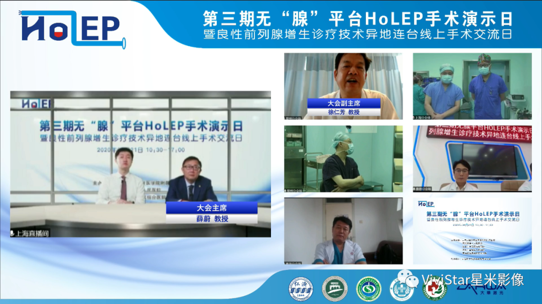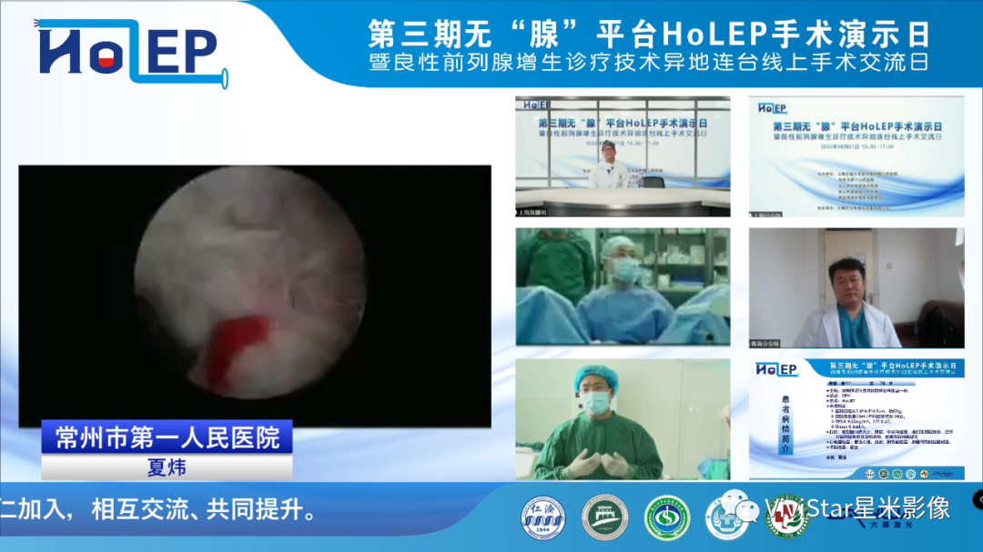 由上海交通大学医学院附属仁济医院、常州市第一人民医院、凉山州中西医结合医院、凉山州喜德县人民医院、青岛西海岸新区中医医院联合主办,无锡大华激光承办的第三期无“腺”平台HoLEP手术演示日暨良性前列腺增生诊疗技术异地连台线上手术交流日活动于2020年8月21日圆满完成。